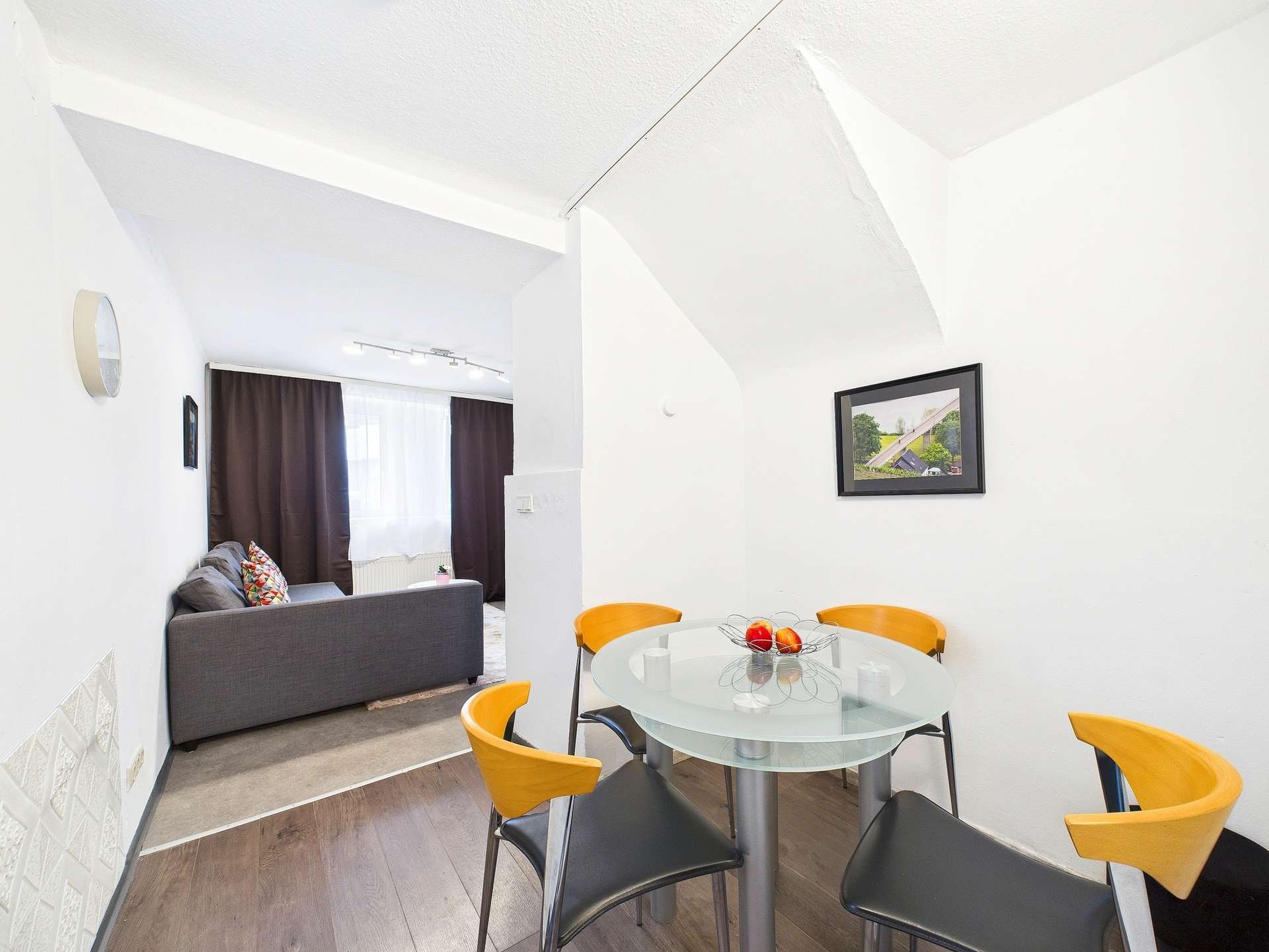 Die großzügige Maisonettewohnung im Ober- und Dachgeschoss bietet etwa 100 m² Wohnfläche und ist fest vermietet – mit einer monatlichen Kaltmiete von ca. 690 €. Ergänzt wird sie durch zwei voll möblierte Ferienwohnungen, die sich ideal für den sofortigen Weiterbetrieb eignen: eine im Obergeschoss mit ca. 30 m² und eine im Untergeschoss mit ca. 40 m².
