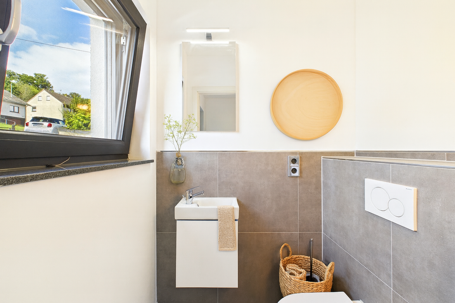 Die Doppelhaushälfte wird über eine eigene Luft-Wärmepumpe mit Warmwasseraufbereitung beheizt – ein modernes, nachhaltiges Heizsystem für zeitgemäßes Wohnen.