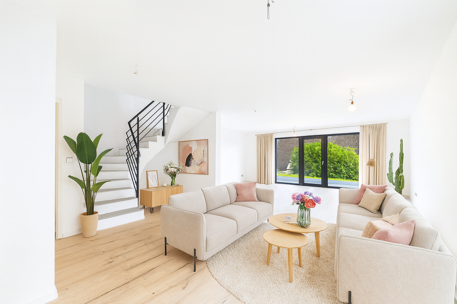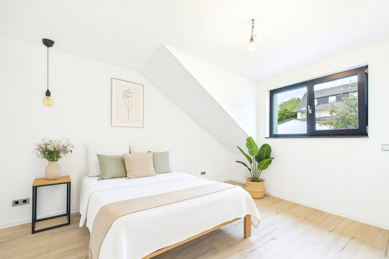 Die dargestellten Einrichtungsideen wurden mithilfe moderner KI-Technologie visualisiert. Sie dienen ausschließlich der Inspiration, damit Sie sich die räumlichen Möglichkeiten und die Wirkung einer Einrichtung besser vorstellen können. Die tatsächliche Immobilie wird unmöbliert übergeben.
