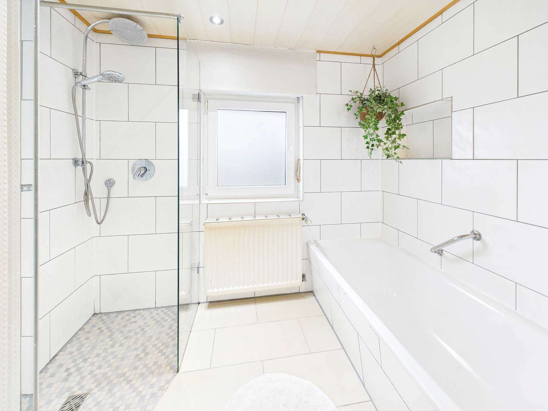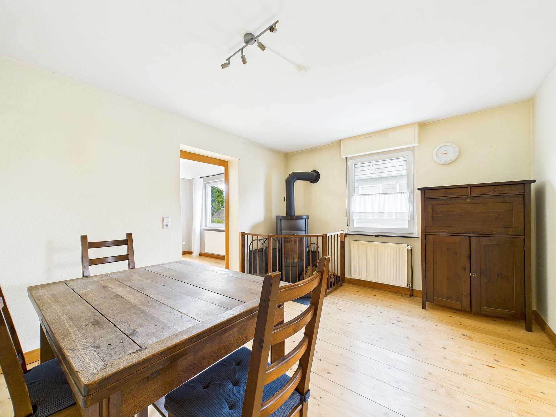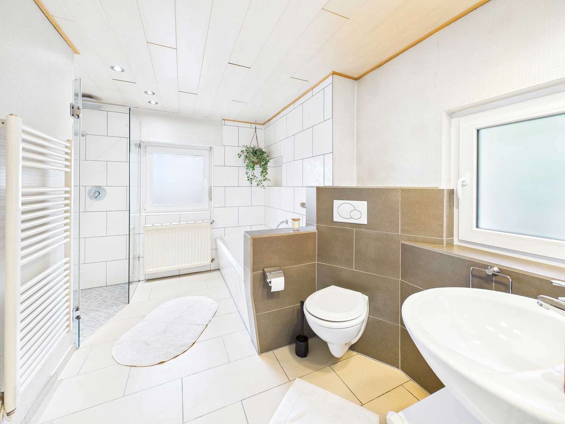 Im Erdgeschoss erwartet Sie ein großzügiges Wohnkonzept: Das helle Wohnzimmer im Anbau lädt mit seiner Weite und gemütlichen Atmosphäre zum Verweilen ein. Die Küche ist großzügig bemessen und bietet viel Platz für gemeinsame Kochabende. Angrenzend befindet sich das separate Esszimmer, das durch seinen charmanten Holzofen zum absoluten Highlight wird – hier verbinden sich Behaglichkeit und Funktionalität auf besonders schöne Weise. Zwei Schlafzimmer schaffen ausreichend Rückzugsmöglichkeiten, ergänzt durch ein Gäste-WC und ein modern ausgestattetes Tageslichtbad, das im Jahr 2012 umfassend saniert wurde. Mit Wanne und Dusche bietet es zeitgemäßen Komfort und eine hochwertige Ausstattung.