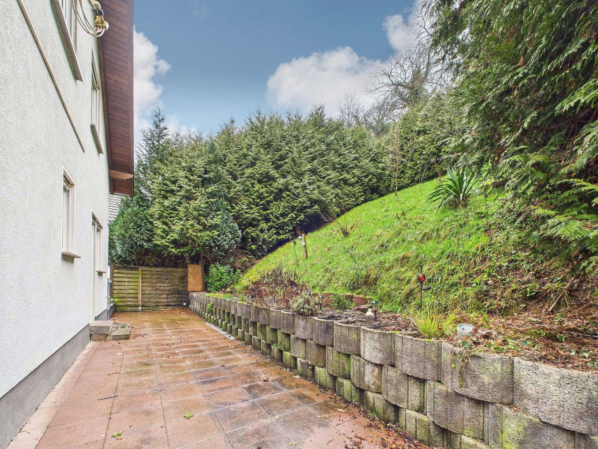 Dieses im Jahr 2004 in massiver Bauweise errichtete Einfamilienhaus befindet sich auf einem ca. 398 m² großen Grundstück in ruhiger Ortsrandlage, direkt am Waldrand. Durch die Hanglage eröffnet sich ein schöner Blick auf die Mosel, zugleich liegt das Objekt in einem hochwasserfreien Bereich. Vor dem Haus stehen drei Kfz-Stellplätze zur Verfügung; ergänzend gehört eine Garage zum Angebot.