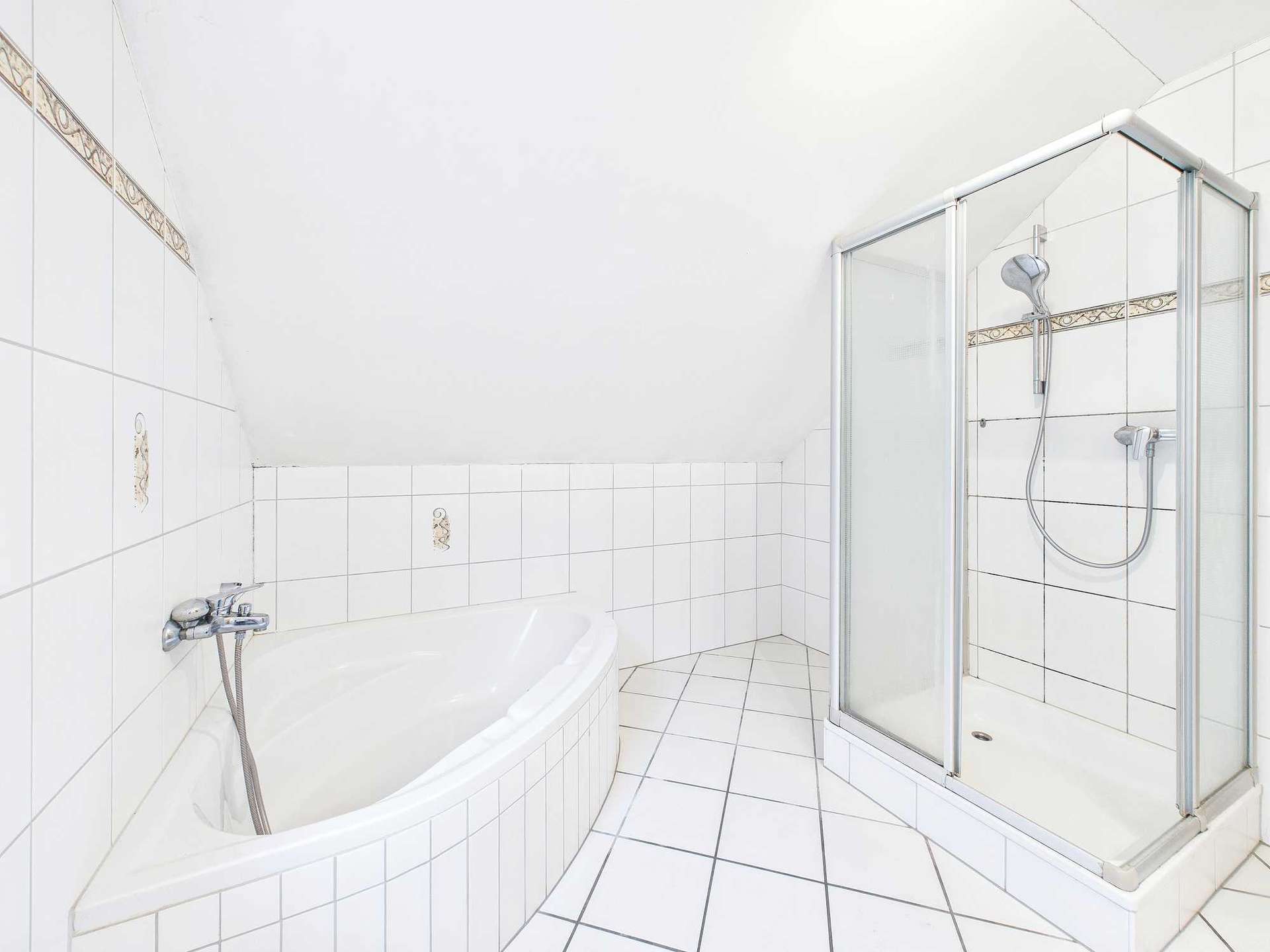 Das ausgebaute Dachgeschoss beherbergt zwei Schlafzimmer sowie ein Tageslichtbad, das mit einer Eckwanne und einer Dusche ausgestattet ist. Auch auf dieser Etage steht ein Balkon mit Blick auf die Mosel zur Verfügung und unterstreicht die besondere Lagequalität des Hauses.