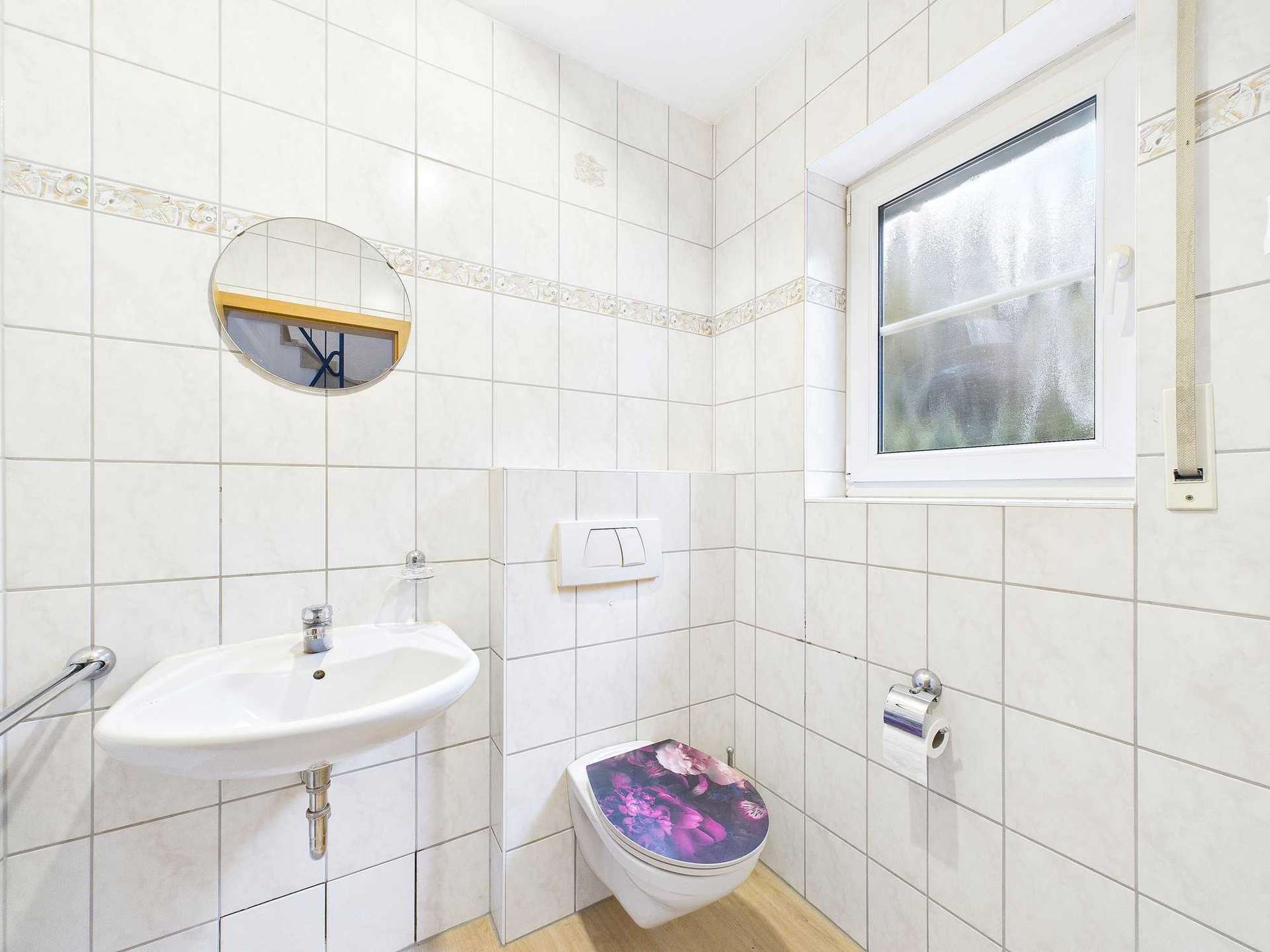 Bei den Fenstern handelt es sich um doppelt verglaste Kunststoff-Fenster mit Strossen und Rollladen.