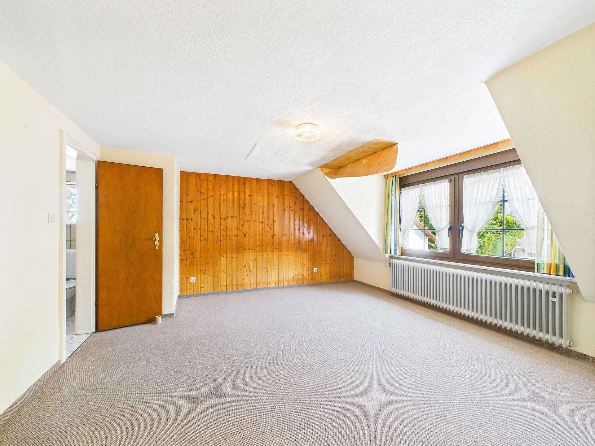 Darüber hinaus bietet der Speicher zusätzlichen Stauraum. Die oberste Geschossdecke sowie die Dachspitze sind gedämmt, was sich positiv auf das Raumklima auswirkt.
