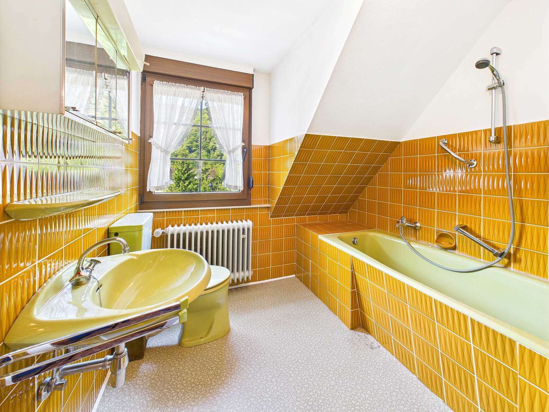 Die Wasserleitungen und die Abwasserrohre stammen ebenfalls aus dem Baujahr.