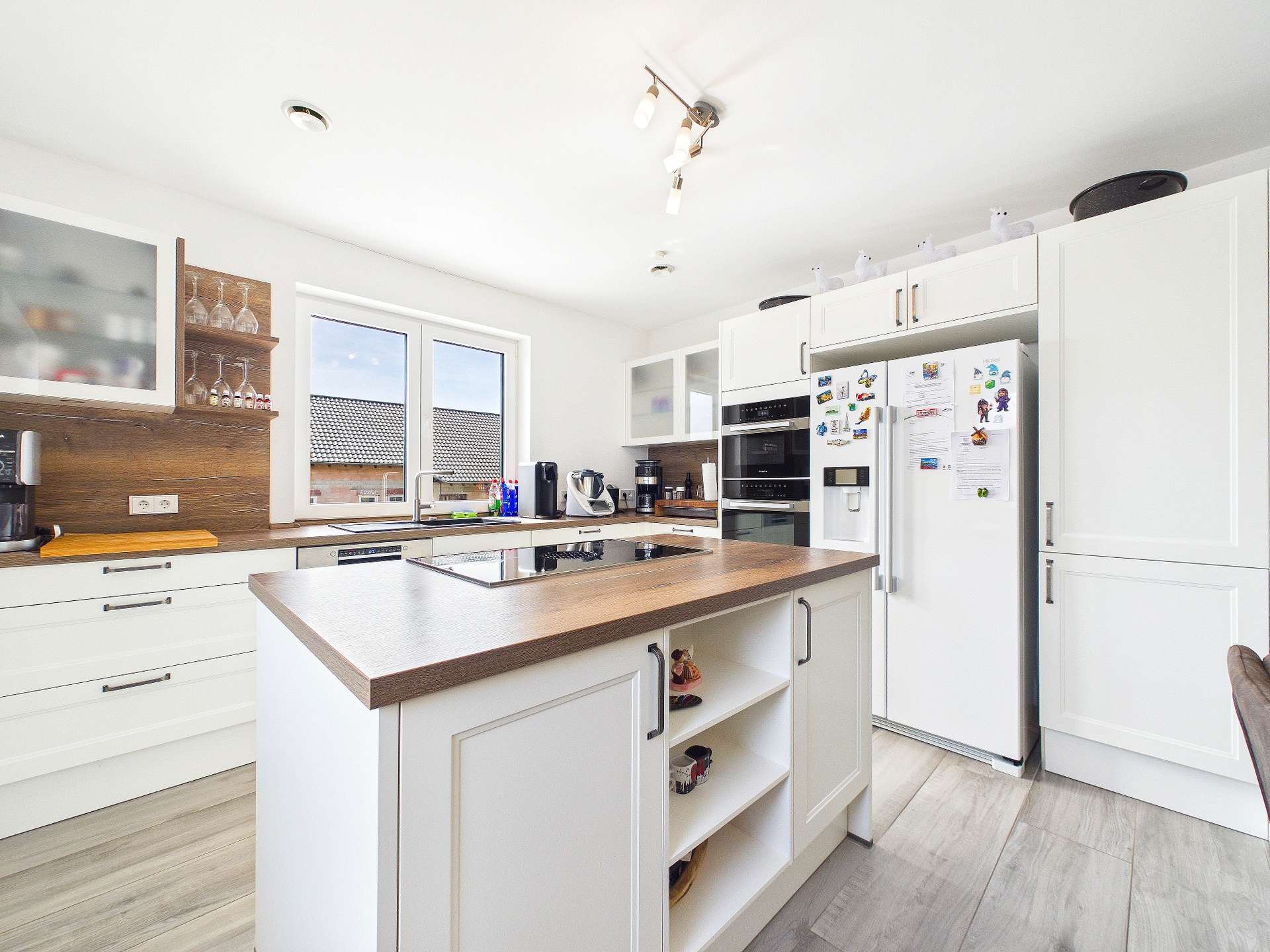 Ein weiteres Highlight ist das installierte Smart-Home-KNX-System, das zeitgemäßes und komfortables Wohnen auf besonders angenehme Weise unterstützt. Die vorhandene Lüftungsanlage sorgt kontinuierlich für frische Luft im Innenraum und führt verbrauchte Luft zuverlässig ab, ein echter Mehrwert für Wohnkomfort und Raumklima, insbesondere auch für Allergiker. Zusätzlich ist im Haus bereits ein Kamin vorhanden, der aktuell noch nicht angeschlossen ist, aber reizvolle Möglichkeiten für eine spätere Ergänzung bietet.