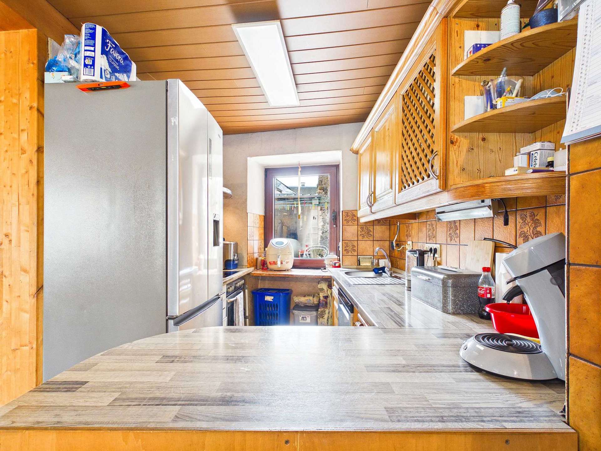 Die Hauselektrik im EG wurde, mit Ausnahme des Badezimmers, bereits komplett erneuert. Das Badezimmer und das OG sind noch mit älteren Stegleitungen versorgt.