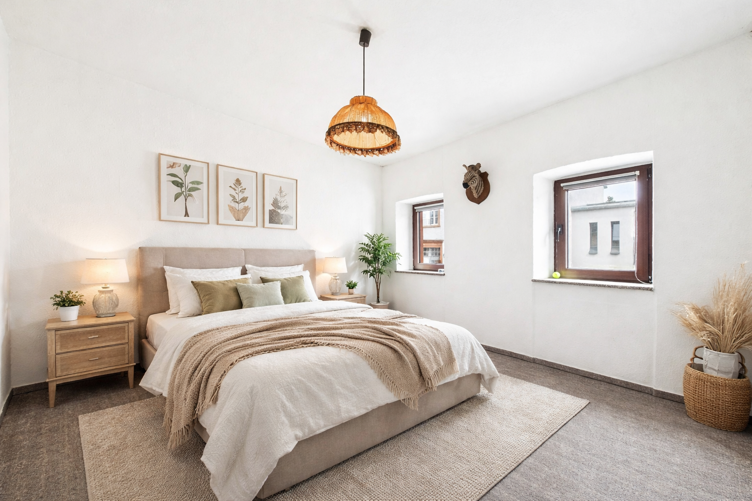 Im Obergeschoss stehen bis zu vier Zimmer zur Verfügung, die sich flexibel als Schlaf-, Kinder- oder Arbeitszimmer nutzen lassen. Eines der Zimmer ist als Durchgangszimmer gestaltet und eignet sich daher insbesondere als Ankleide in Verbindung mit einem der angrenzenden Schlafzimmer. Darüber hinaus befindet sich über dem Küchenbereich ein kleiner Raum, der sich perspektivisch für den Ausbau eines zusätzlichen Badezimmers anbietet. Über dem Wohnbereich liegt ein Speicher, der weiteren Stauraum bietet.