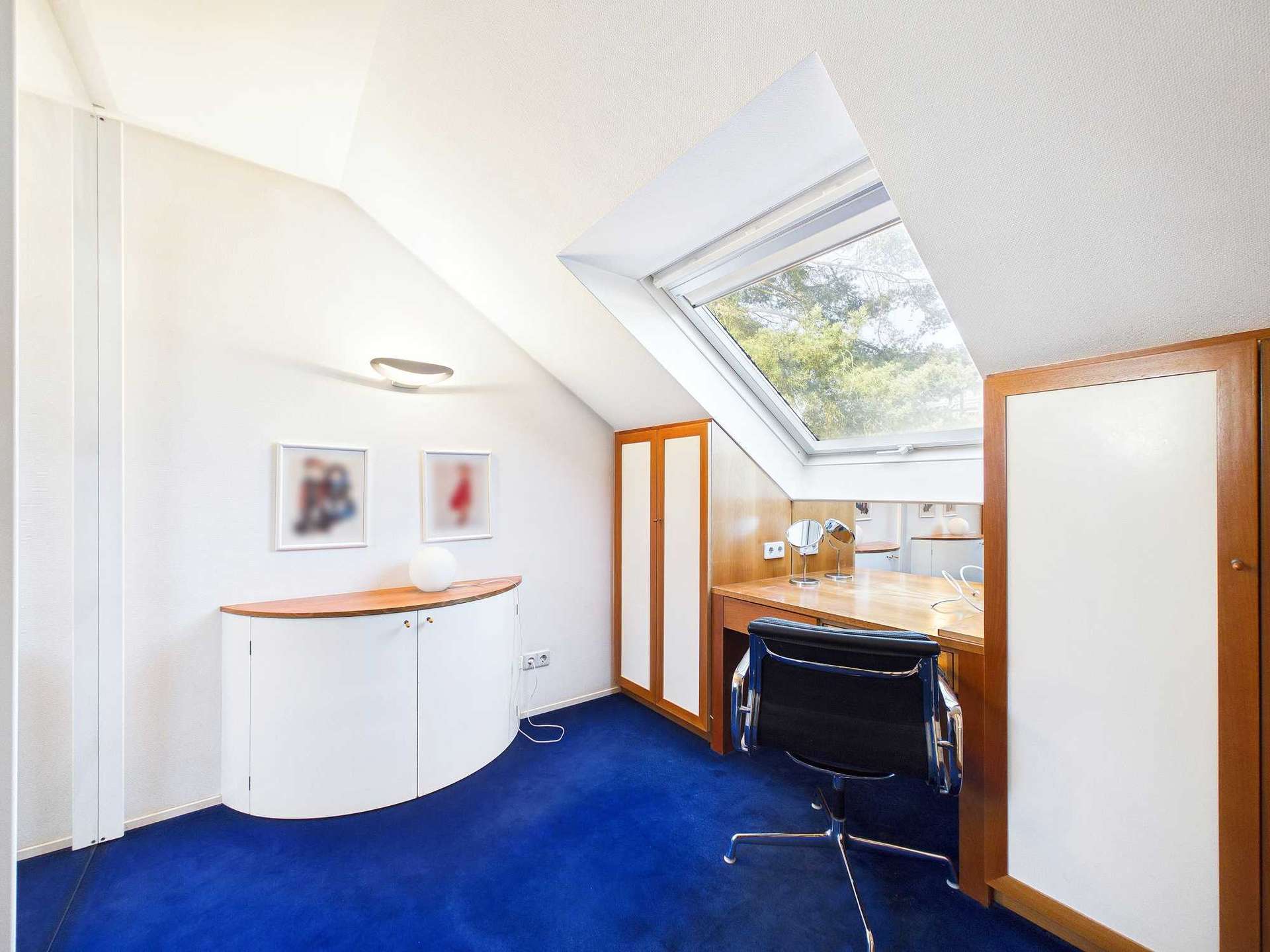 Im ausgebauten Dachgeschoss liegen das Elternschlafzimmer mit separater Ankleide, ein Kinderzimmer sowie ein weiteres, kleineres Zimmer, das sich als Arbeits- oder Gästezimmer eignet. Die Trennwand zwischen Schlafzimmer und Ankleide könnte voraussichtlich entfernt werden, wodurch sich die Raumfläche bei Bedarf vergrößern ließe. Das Badezimmer auf dieser Ebene wurde vor wenigen Jahren modernisiert und verfügt über eine großzügige, bodentiefe Dusche.