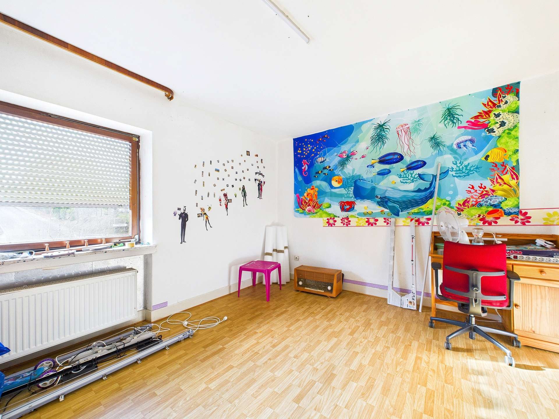Das Obergeschoss bietet mit vier Zimmern, einer Küche und weiteren Flächen reichlich Platz für eine große Familie. Denkbar ist auch eine klare Trennung der Etagen, sodass beispielsweise die ältere Generation ebenerdig wohnen kann, während im Obergeschoss das Familienleben stattfindet.