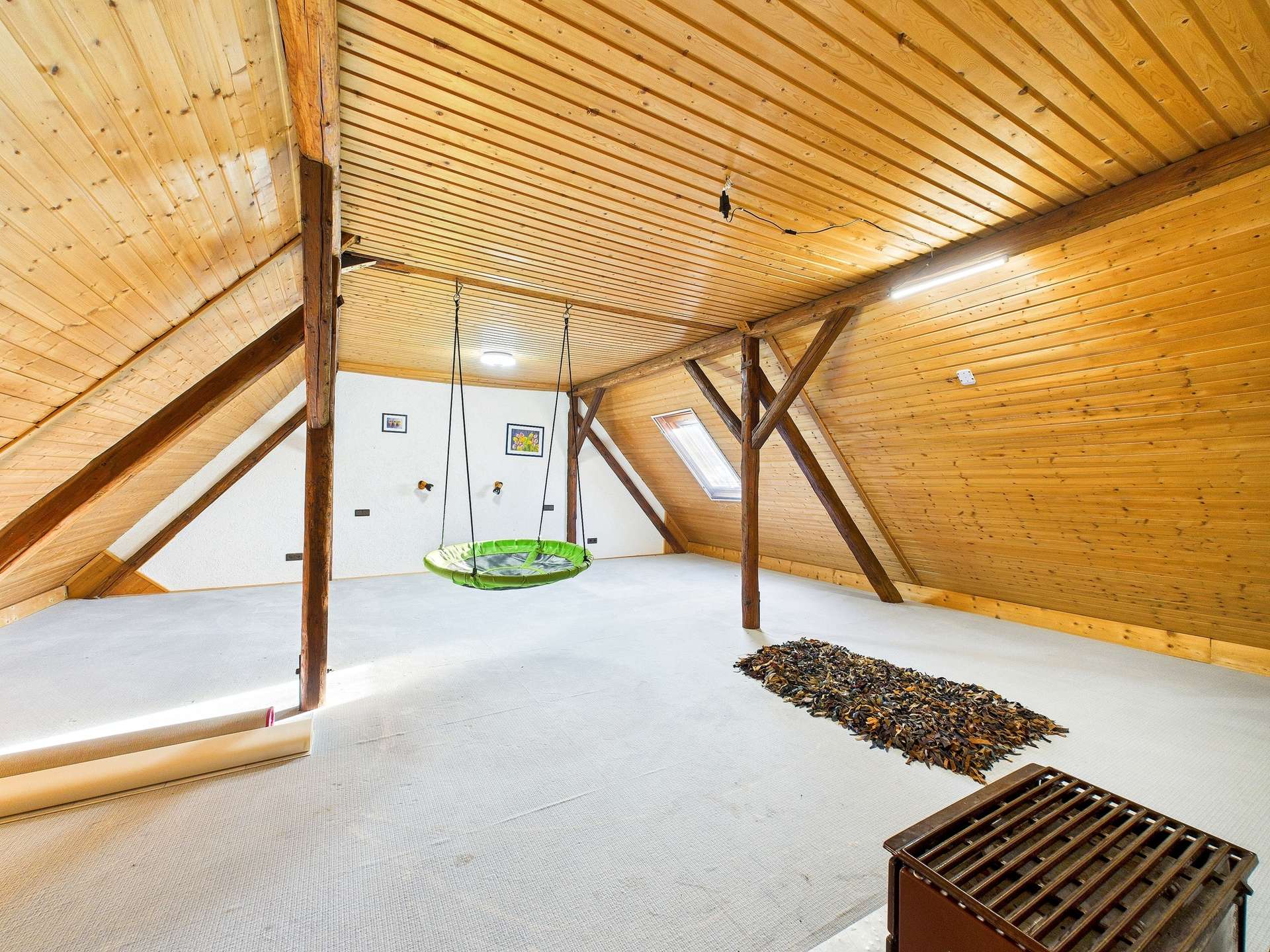 Im Dachgeschoss eröffnen sich zusätzliche Möglichkeiten: Zwei großzügige Zimmer stehen bereits zur Verfügung. Ein Kamin ist vorhanden und darf grundsätzlich noch betrieben werden, ist aktuell jedoch abgemeldet. Dieser Bereich eignet sich ideal als Rückzugsort, Atelier, Jugendbereich oder zusätzliche Wohneinheit.