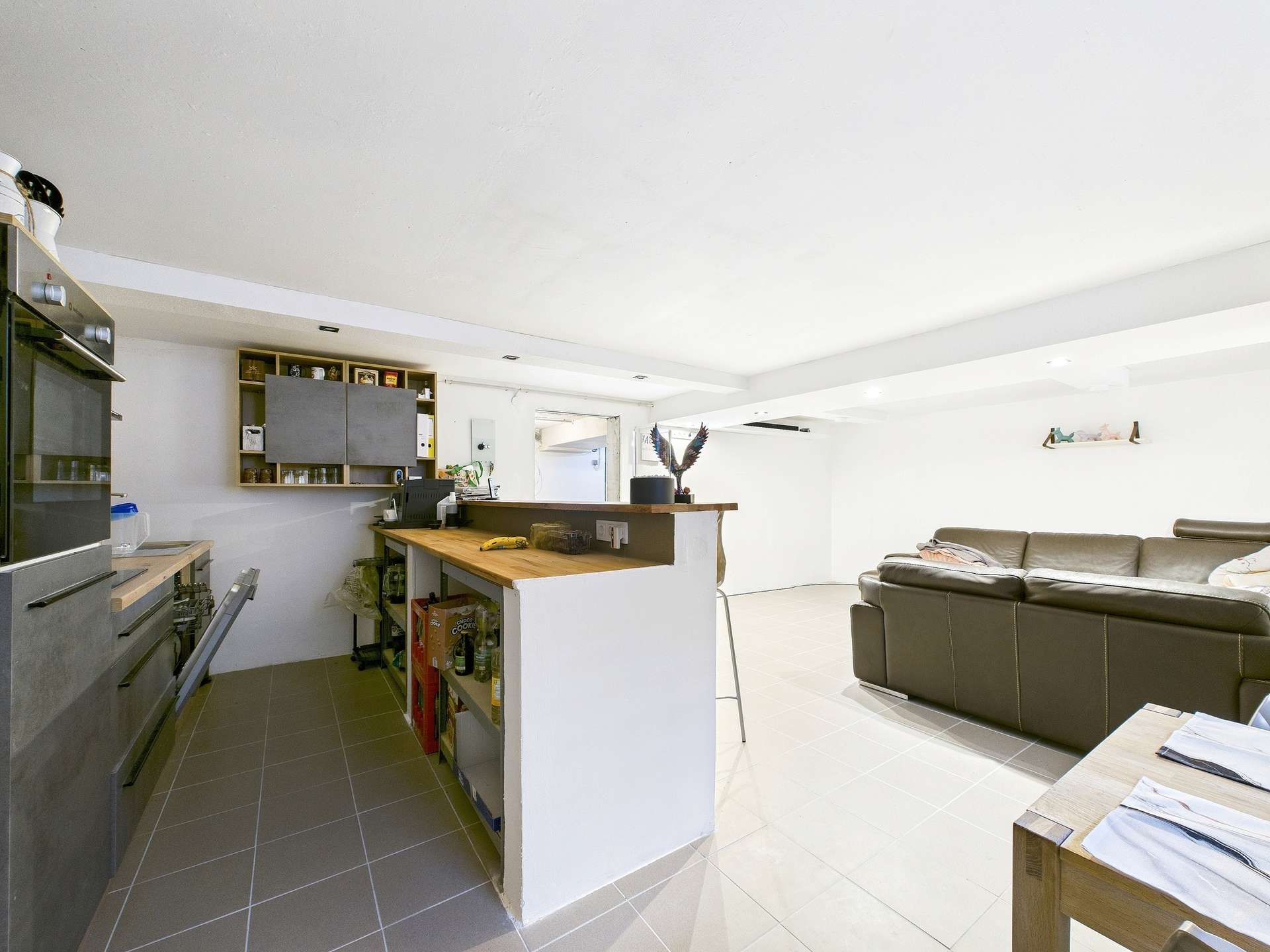 Das Untergeschoss bietet zusätzlich ca. 100 m² Nutzfläche. Ein Hobbyraum mit Küchenzeile, ein Badezimmer mit Dusche, der Heizungsraum sowie zwei Lagerräume schaffen ideale Voraussetzungen für kreative Nutzung, Stauraum oder erweiterte Wohnmöglichkeiten.