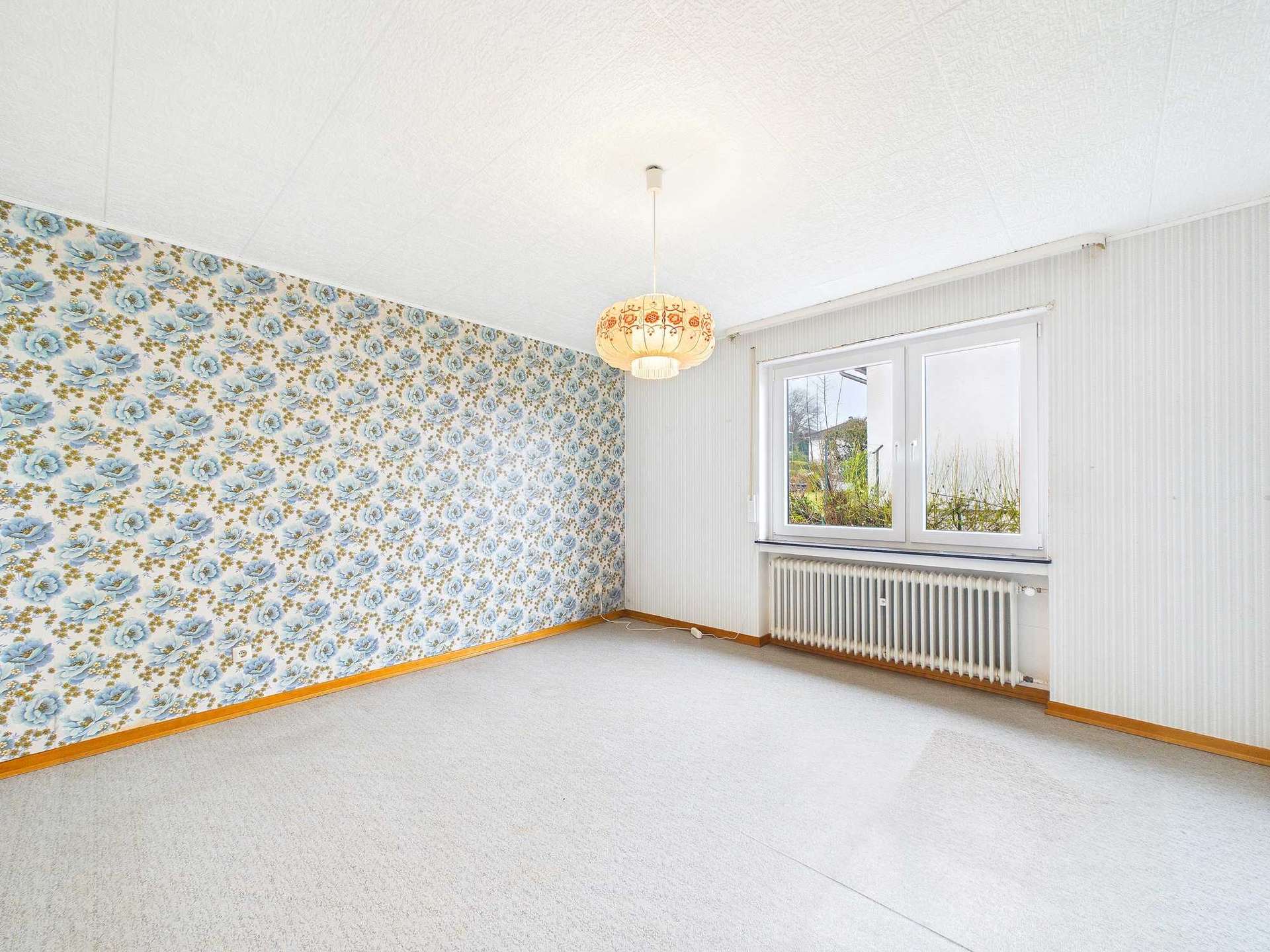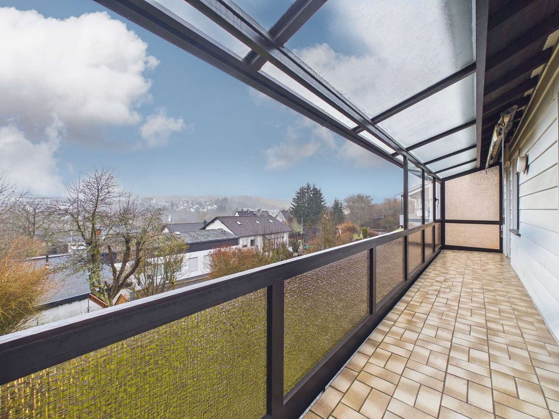 Die Immobilie bietet rund 135 m² Wohnfläche, verteilt auf sieben Zimmer, eine Küche sowie zwei Badezimmer. Im Erdgeschoss befindet sich das großzügige Wohnzimmer mit direktem Zugang zum überdachten Balkon. Von hier aus eröffnet sich der schönste Blick über Daun und die umliegende Umgebung. Auch das angrenzende Esszimmer verfügt über einen Zugang zum Balkon. Durch das Entfernen der Zwischenwand zwischen Küche und Esszimmer ließe sich ein moderner, großzügiger Küchen- und Essbereich realisieren, der heutigen Wohnansprüchen entspricht. Ergänzt wird diese Etage durch das Elternschlafzimmer sowie ein weiteres Zimmer, das flexibel als Kinder-, Arbeits- oder Gästezimmer genutzt werden kann.