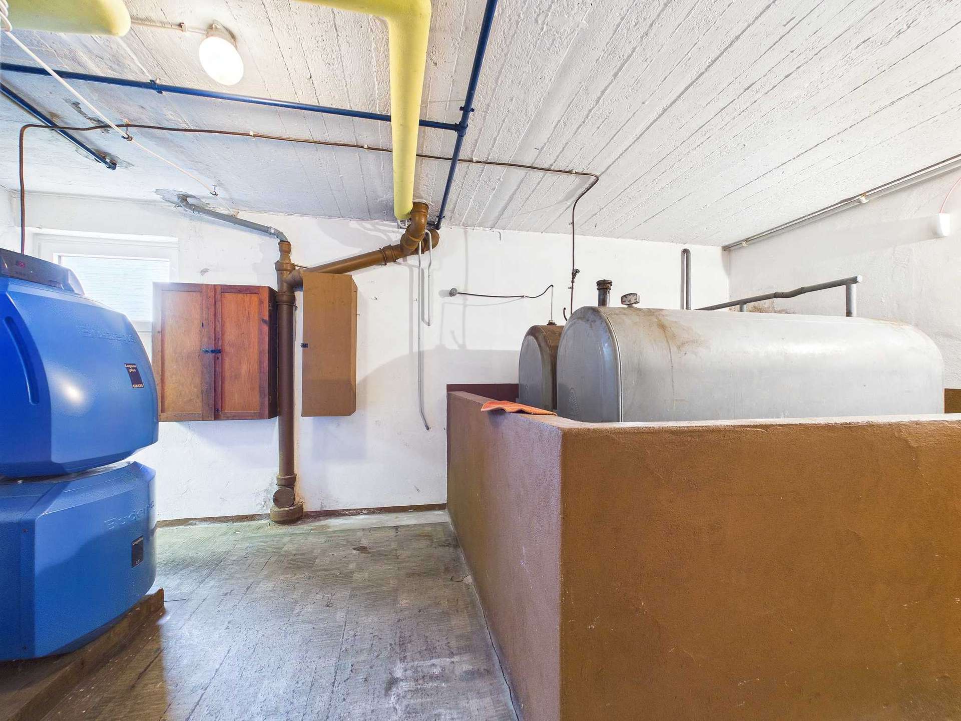 Ebenfalls im Souterrain befinden sich der Heizungsraum, der Öllagerraum sowie der Waschraum mit direktem Zugang zum Garten.