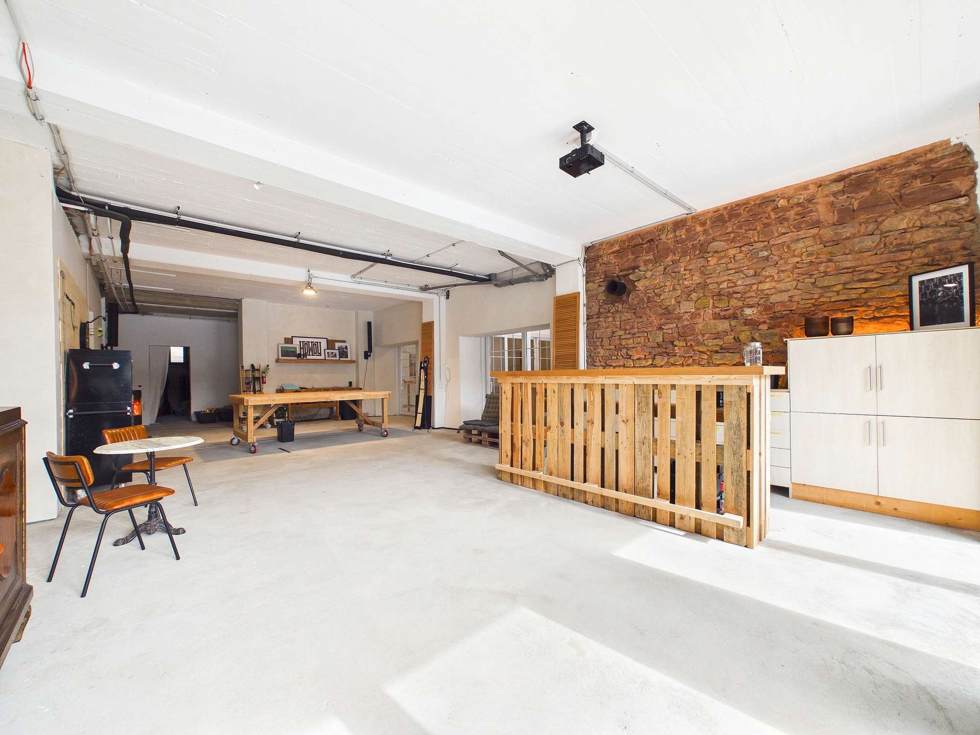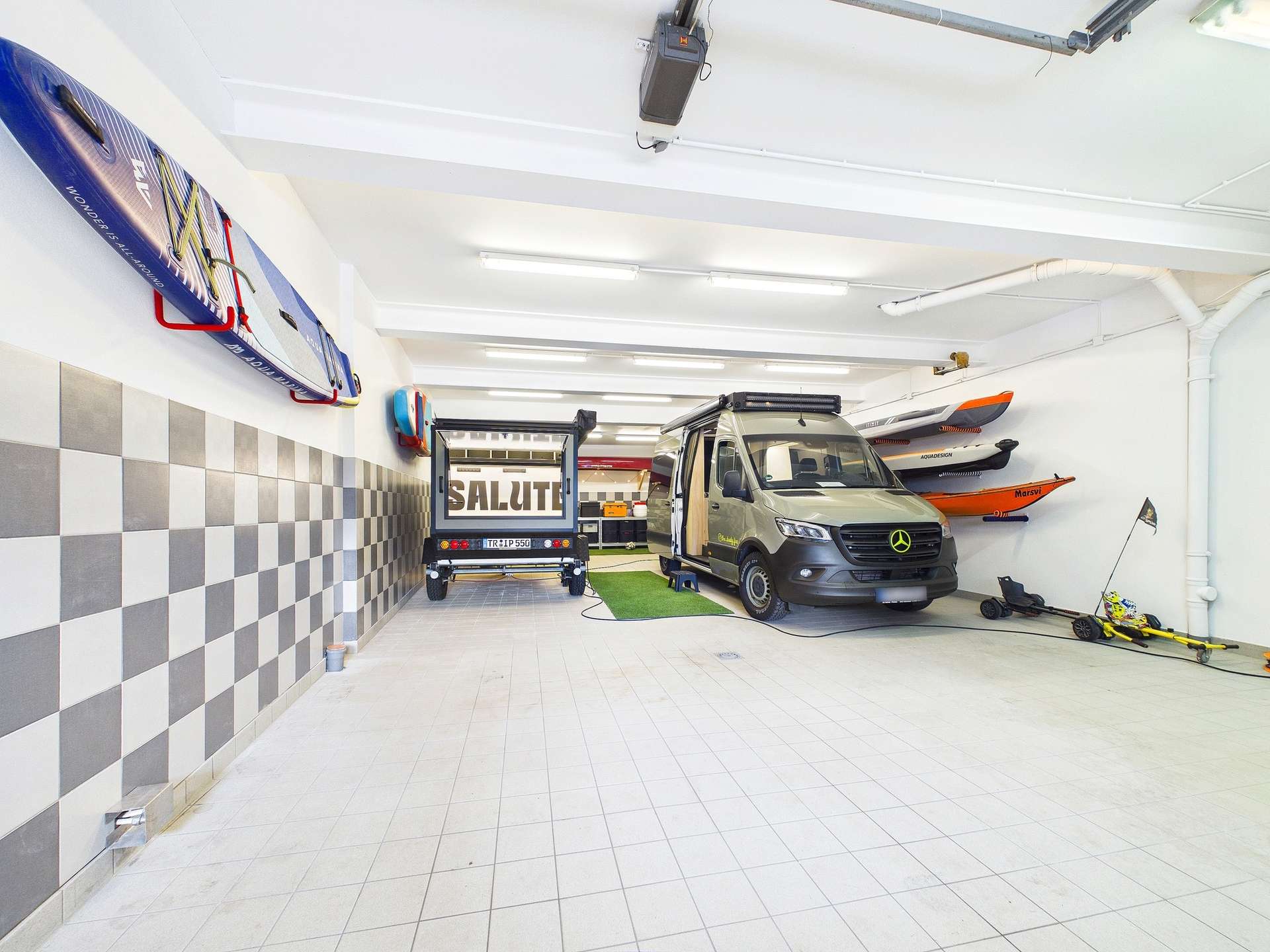 Bereits im Untergeschoss zeigt sich die beeindruckende Vielseitigkeit der Immobilie. Der linke Gebäudeteil umfasst die Garage, den Maschinenraum sowie einen großzügigen Hobbybereich mit Küche. Ein angrenzendes Bad ist bereits vorgesehen und wartet noch auf die Fertigstellung. Diese Ebene bietet ideale Voraussetzungen zum Werkeln, für Hobbys, ein Gewerbe oder auch für die stilvolle Unterbringung besonderer Liebhaberstücke. Von hier aus gelangen Sie zudem in den terrassenartig angelegten Garten, der dem Haus eine ganz besondere Atmosphäre verleiht und als geschützter Rückzugsort zum Entspannen und Genießen einlädt.