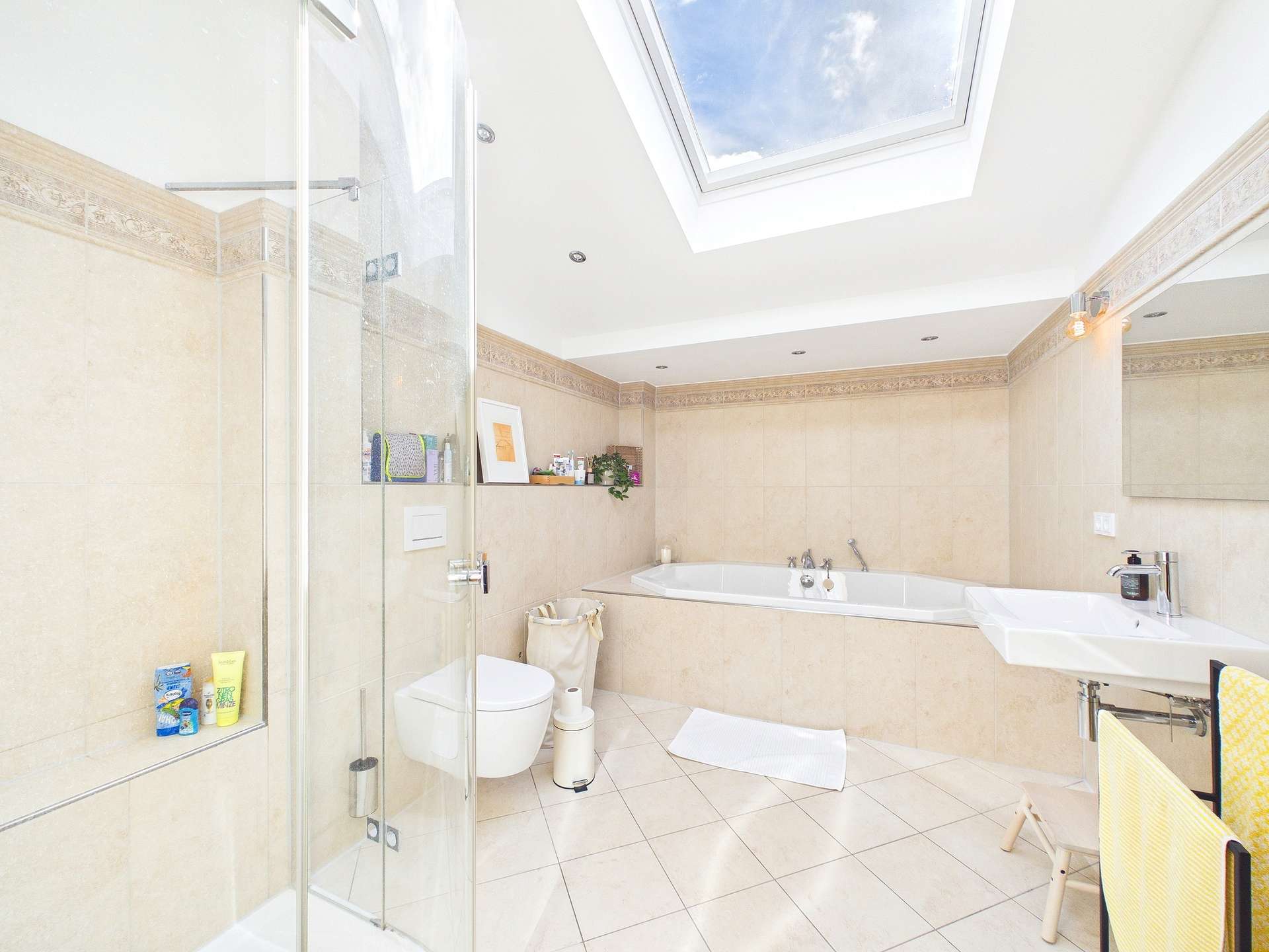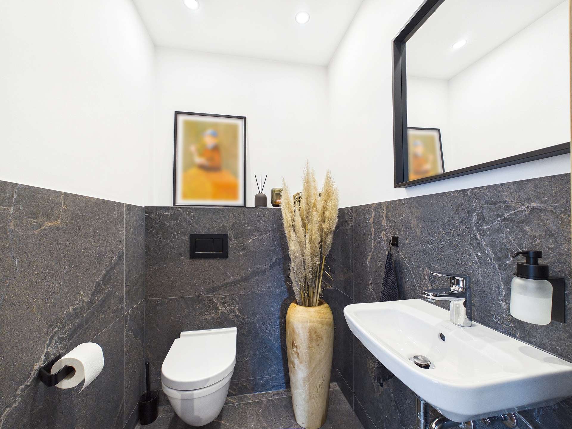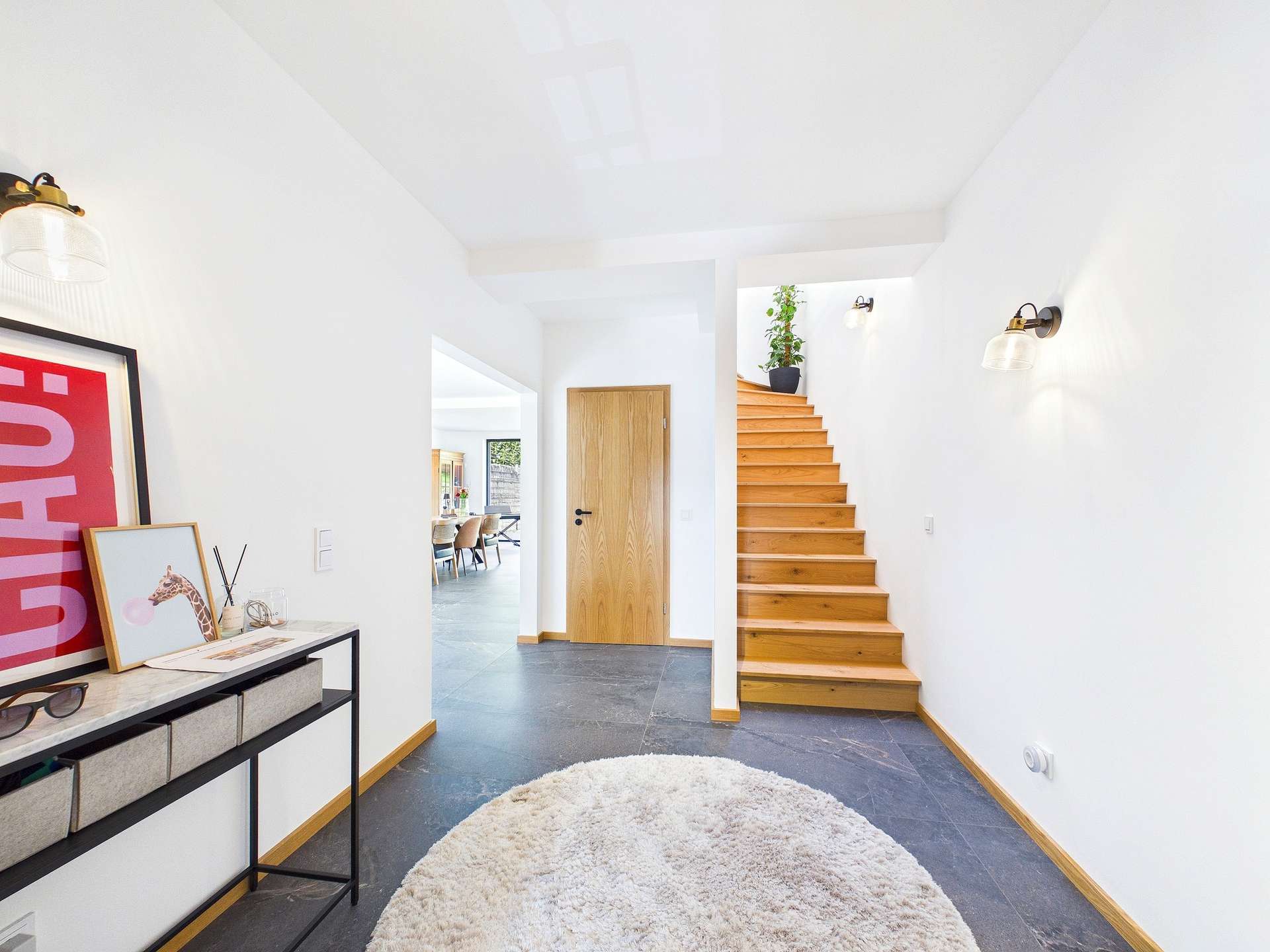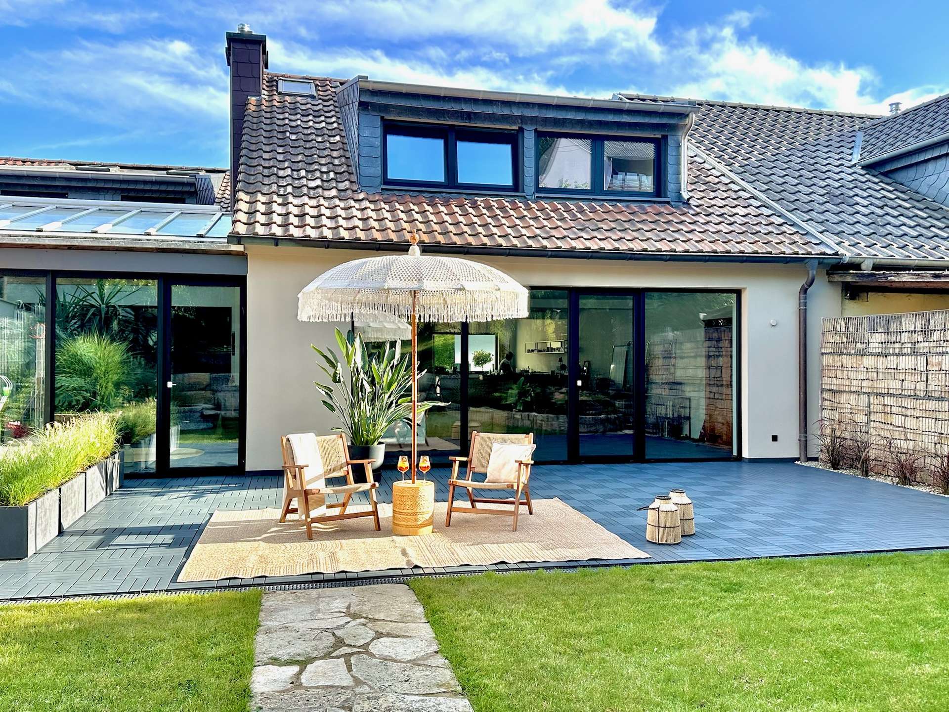 Im Innenbereich zeigt sich das Haus in einer besonders geschmackvollen und hochwertigen Ausführung. Verarbeitet wurden unter anderem Echtholzböden, großformatige Fliesen sowie moderne Materialien, die den stilvollen Charakter der Immobilie betonen. Die Ausstattung vermittelt insgesamt eine gelungene Verbindung aus Wohnkomfort, Qualität und zeitgemäßem Design.