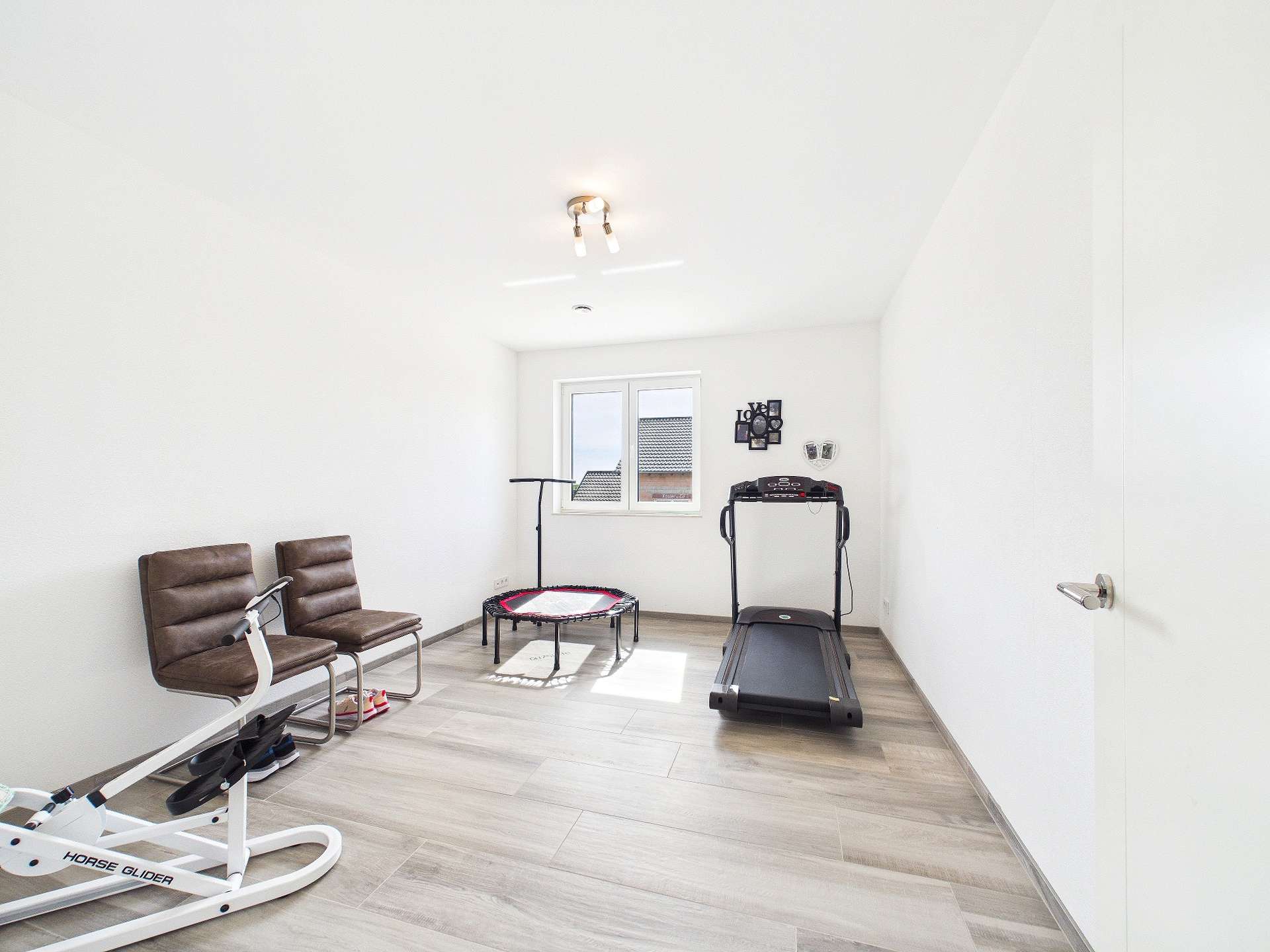 Sämtliche wesentlichen Gewerke entsprechen dem jungen Baujahr der Immobilie. So stammen Fenster, Elektrik, Wasserleitungen und Dach ebenfalls aus dem Jahr 2021. Die Fenster sind durchweg dreifach verglast und bieten damit sehr gute energetische Eigenschaften. An der Vorderseite des Hauses wurden zudem Schallschutzfenster verbaut, was zusätzlichen Wohnkomfort schafft. Abgerundet wird dieser Bereich durch Rollläden aus Aluminium, die im gesamten Haus vorhanden sind und sowohl funktional als auch langlebig sind.