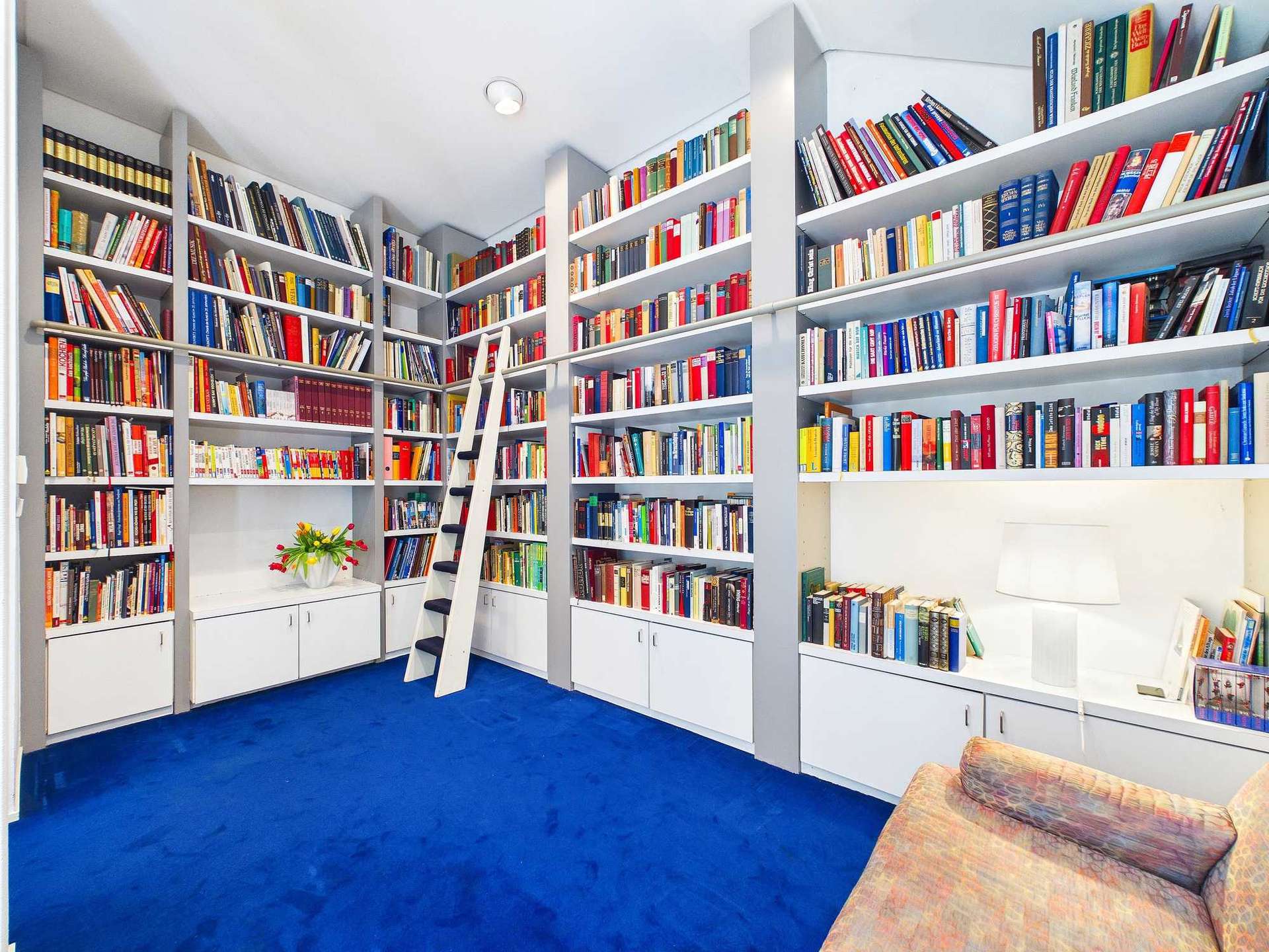 Auf der Zwischenetage befindet sich ein offen gestaltetes Lesezimmer. Durch die Lage direkt oberhalb des Kaminzimmers entsteht hier eine angenehme, konstante Wärme, die den Raum besonders nutzungsfreundlich macht.