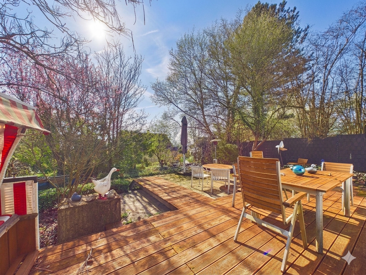 Der Garten hinter dem Haus bietet Freiraum zur Erholung und vielseitige Nutzungsmöglichkeiten im Außenbereich.